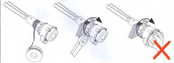 用生料带密封 用扳手拧紧 勿用手拧