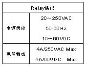 输出方式 Output | 继电器输出,负数AC250V/4A,DC60V/4A |