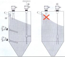 2. 安装时尽可能远离桶槽的进料口以避免物料冲击和误报警的发生。如无法避免时,须在进料口与料位之间加装隔板保护。